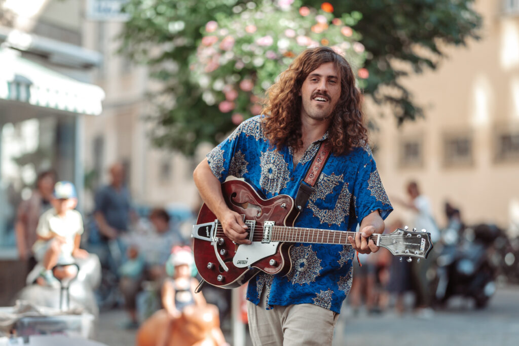Ob Funk, Reggae, Blues oder Rock & Roll – Borja baut seine Songs Schicht für Schicht live auf, mit Beatbox, Basslinien und Gitarrenriffs.